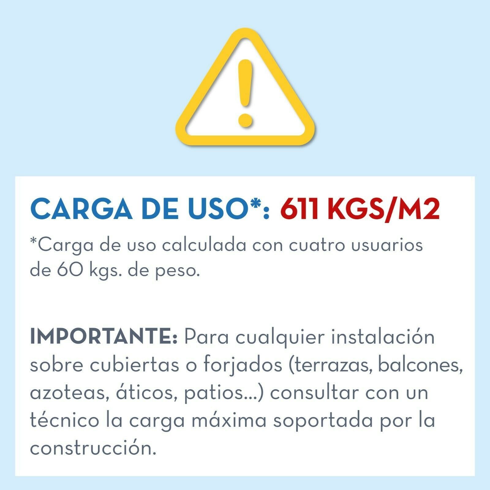 - Montaje: tiempo de montaje 30 min, instalar sobre una superficie lisa, nivelada y estable
