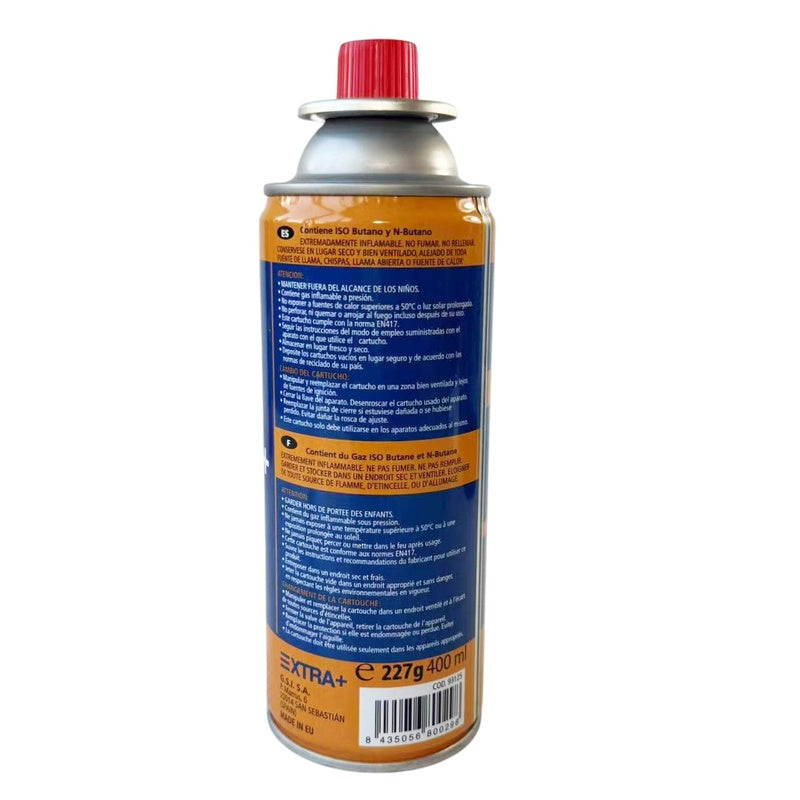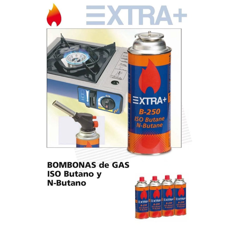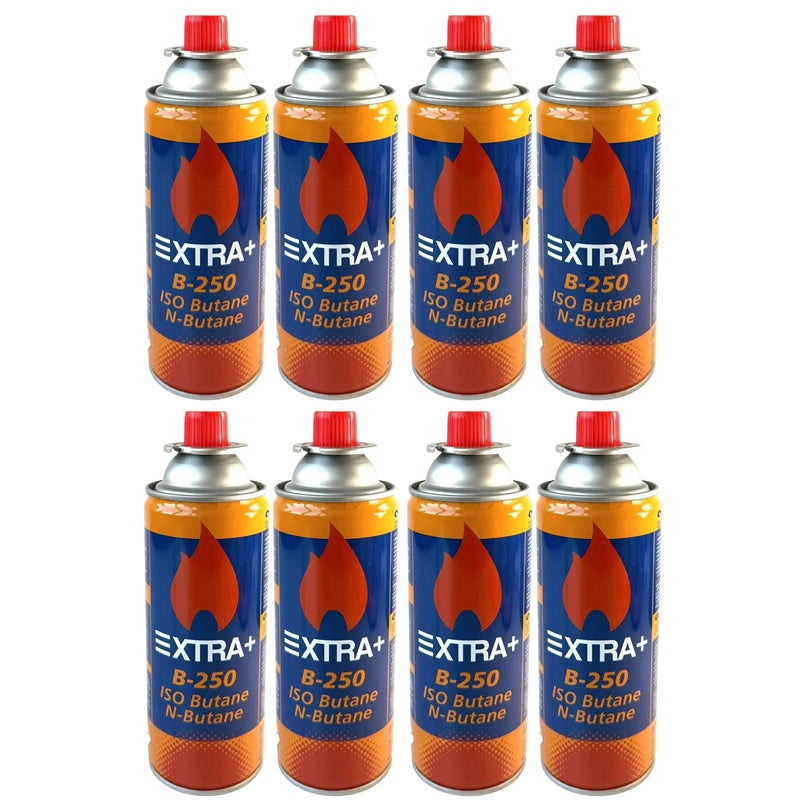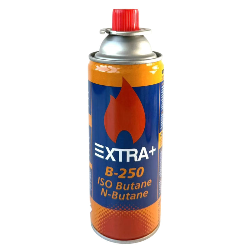 Cartucho de Gas ISO-250 Butano y N-Butano 227g 400ml, Bombona gas, Recambio Lata Gas para Hornillo portátil de camping o Soplete Quemador - XTRA+