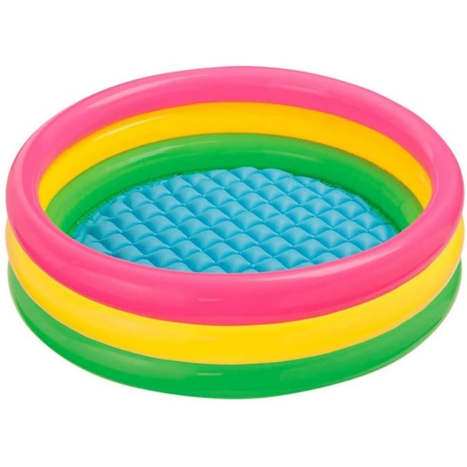 Piscina infantil hinchable con 3 anillos. Mide 152 cm de diámetro y 30 cm de altura. Edad recomendada 1-3 años.