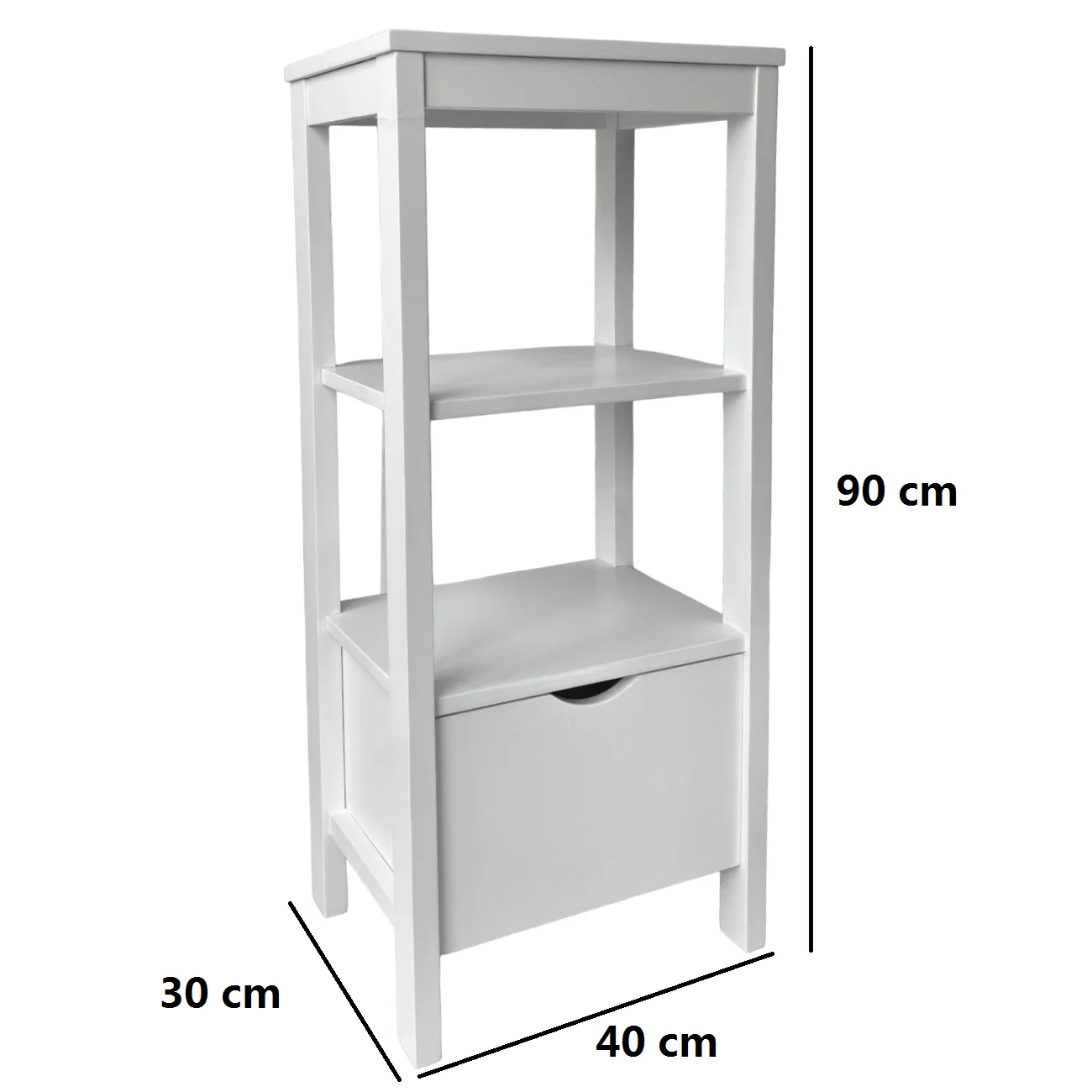 Mueble de Baño con 1 Cajon Bajo + 3 Estantes (2 compartimentos) de Madera Pino Natural Blanco Para