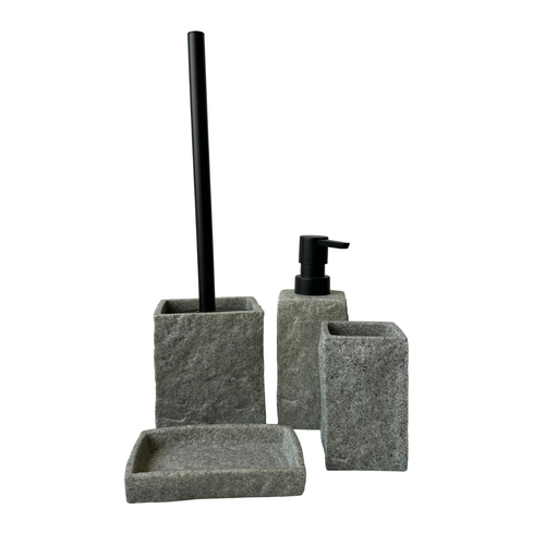 Juego Set de accesorios de baño de poliresina vaso loción dispensador de jabón plato de jabón jabonera cepillo de inodoro escobilla de aseo cuadrado gris oscuro efecto piedra