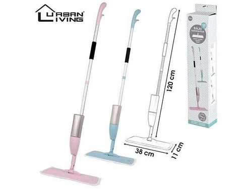 Escoba mopa + spray, rosa y azul color, limpieza hogar suelo microfibra 120 cm