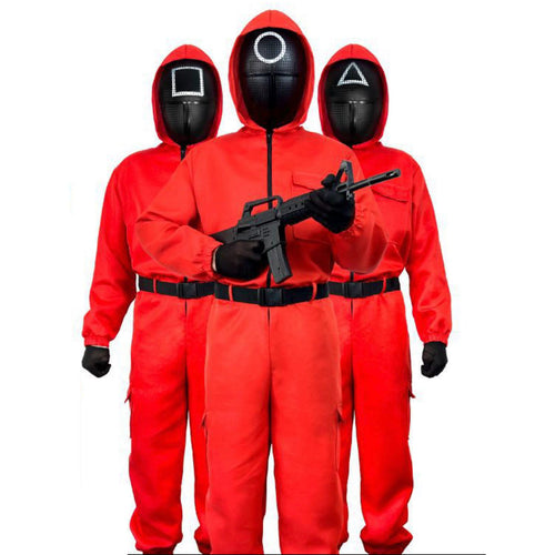 Disfraz Vigilante Mono Rojo con Capucha Cinturón infantil 5 a15 años adulto S a L
