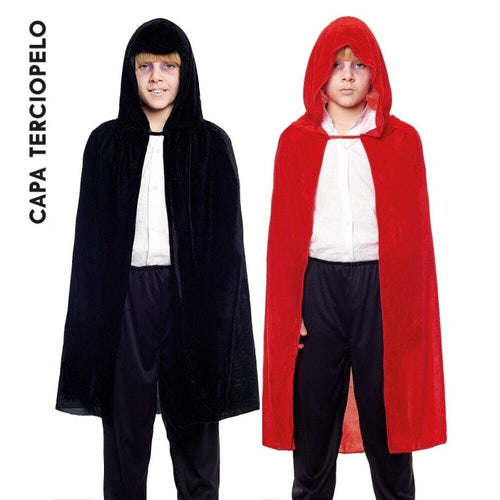 Capa Negra o Roja con capucha Para Disfraz Vampiro 90 cm y 140 cm niños y adultos
