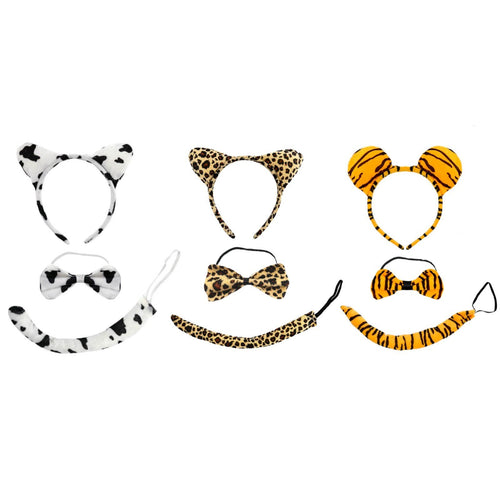 Maxia Fiesta - Set 3 Diadema Pajarita Cola de Animal Vaca Tigre Leopardo Para Disfraz de Fiesta de