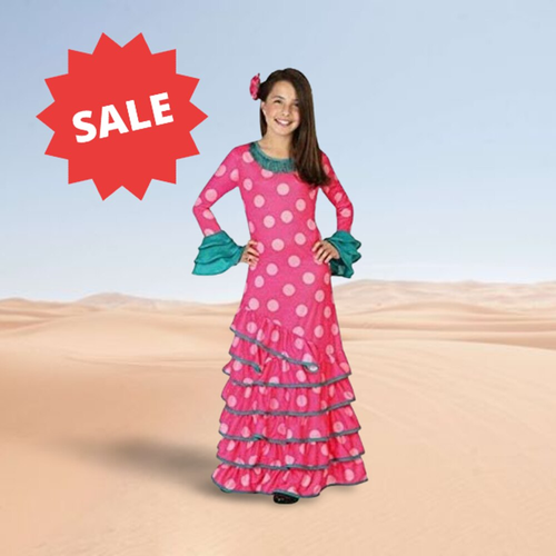 Disfraz Sevillana Flamenco, rosa, Niña Infantil para Carnaval Fiesta Teatro
