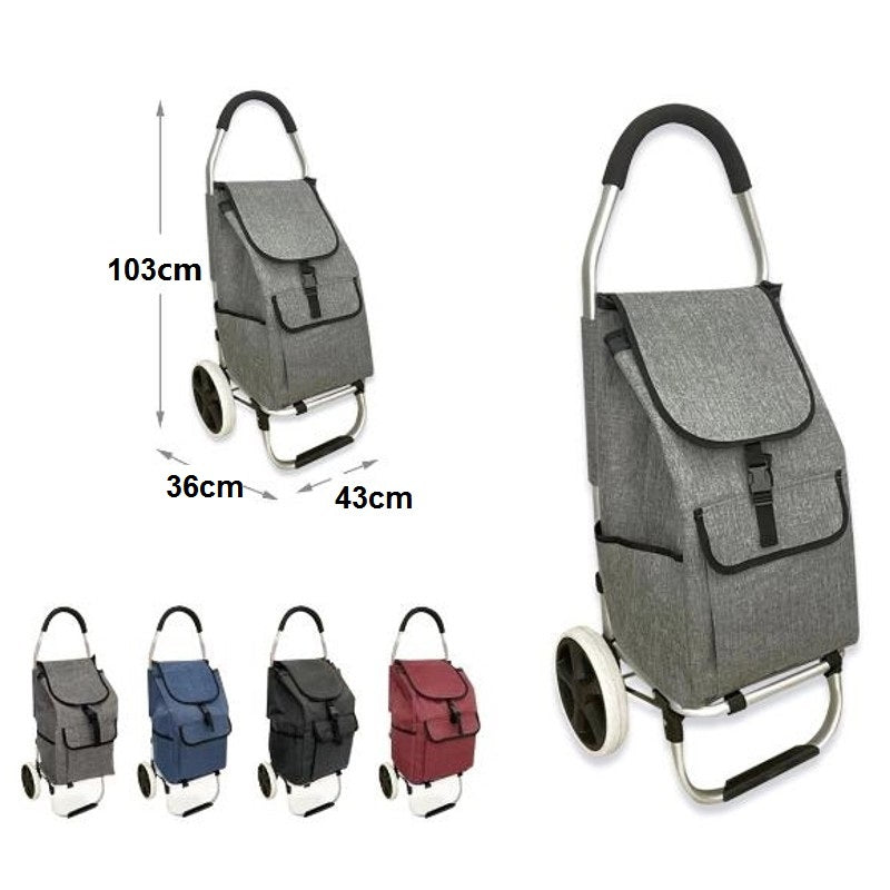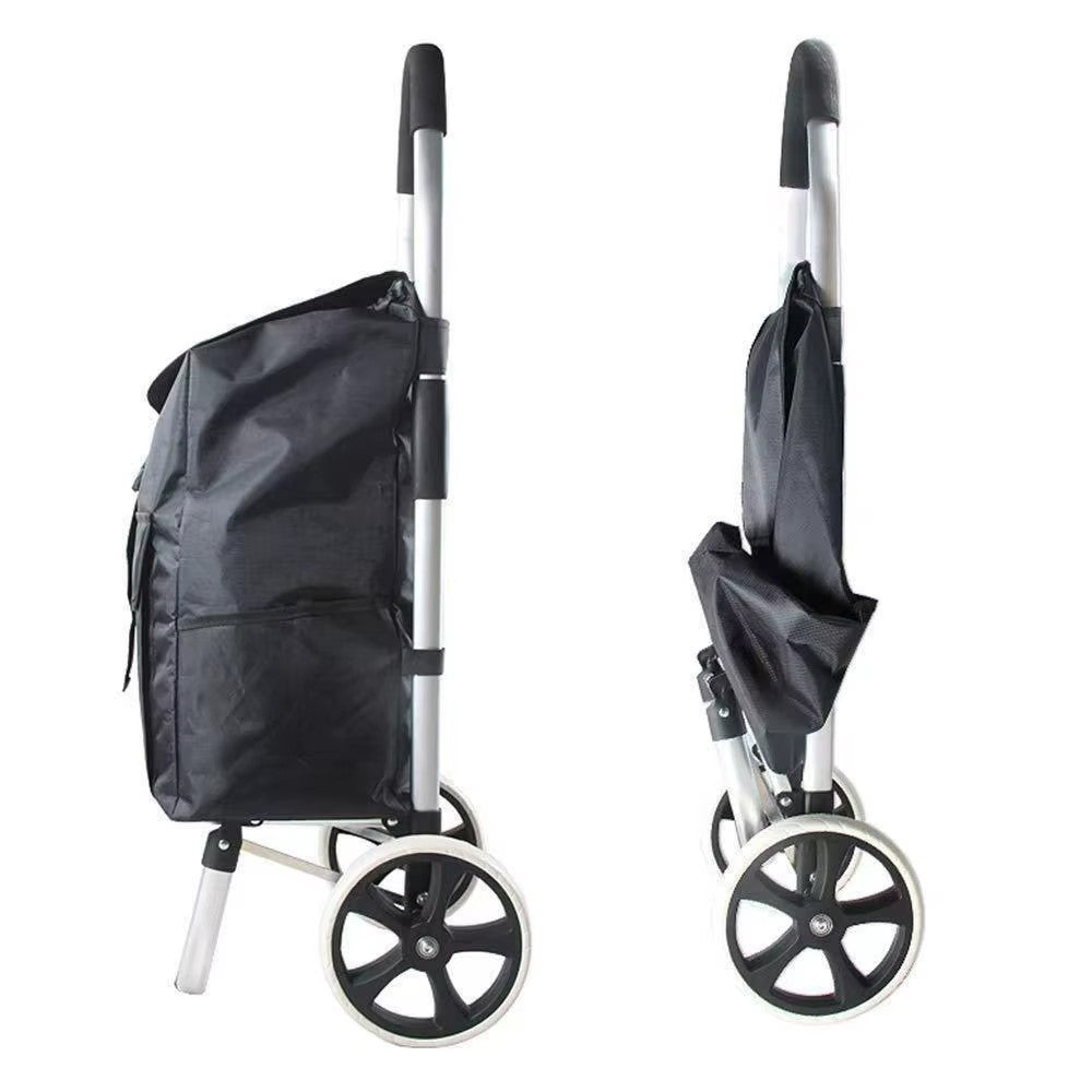 Práctico carro de compra con estructura de aluminio resistente y ultraligero, ideal para transportar tus compras de manera cómoda y sin esfuerzo. Su diseño plegable permite guardarlo fácilmente en casa o en el coche, ocupando poco espacio