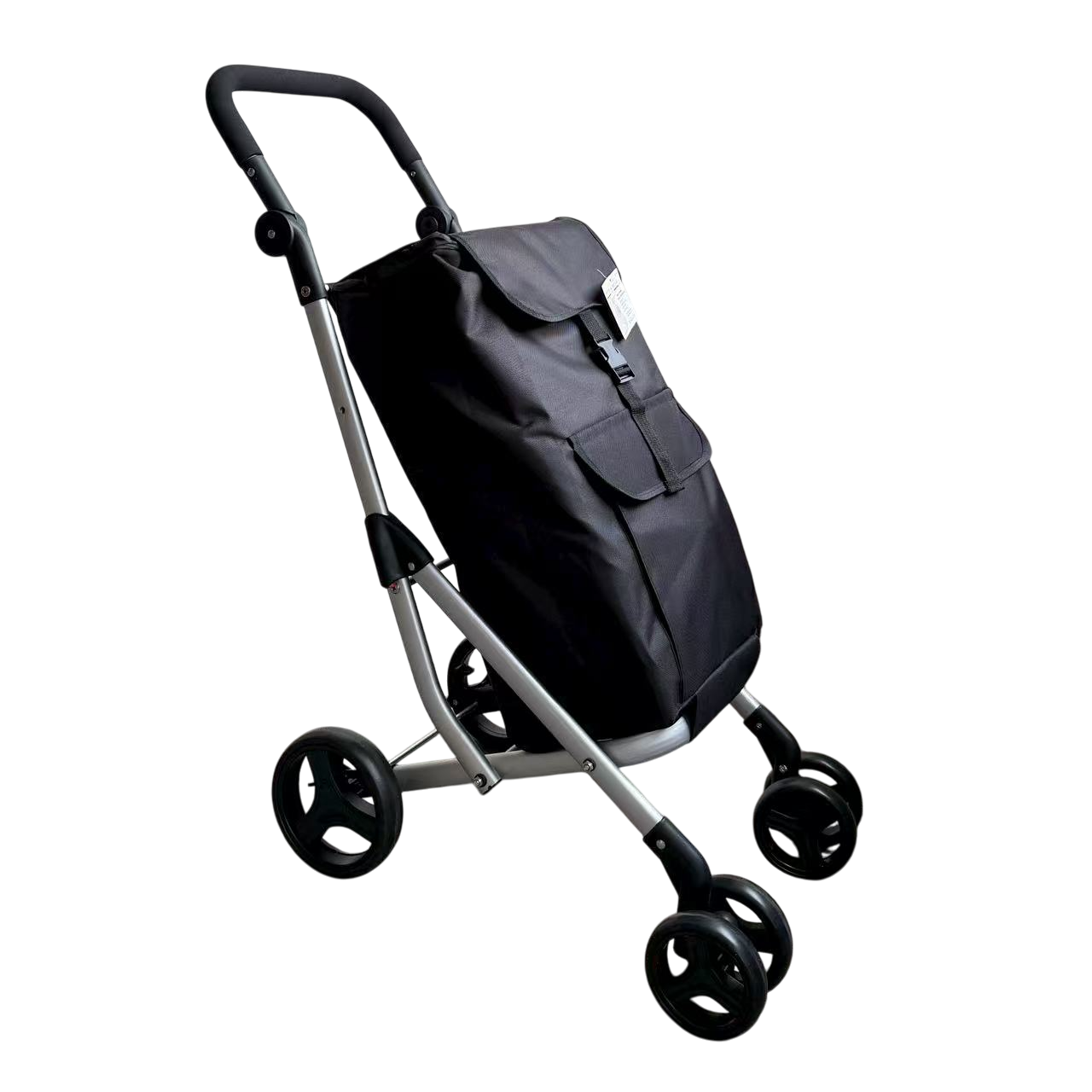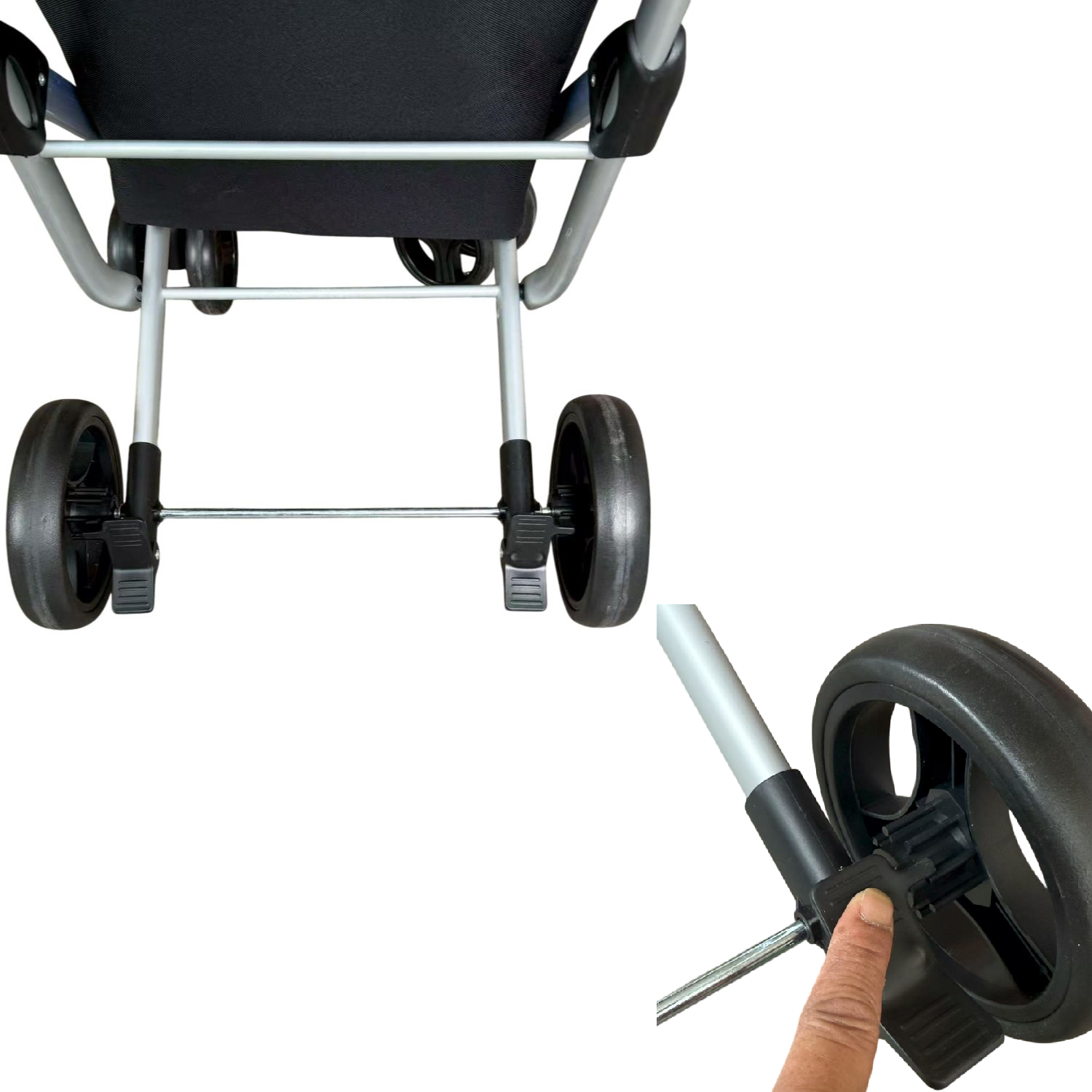 Práctico carro de compra con estructura de aluminio resistente y ultraligero, ideal para transportar tus compras de manera cómoda y sin esfuerzo. Su diseño plegable permite guardarlo fácilmente en casa o en el coche, ocupando poco espacio.