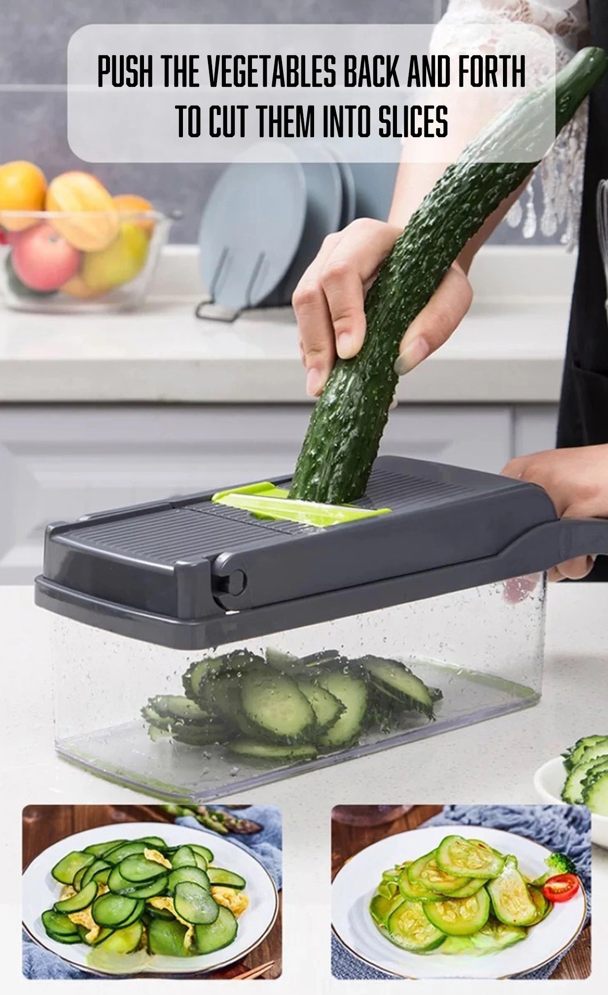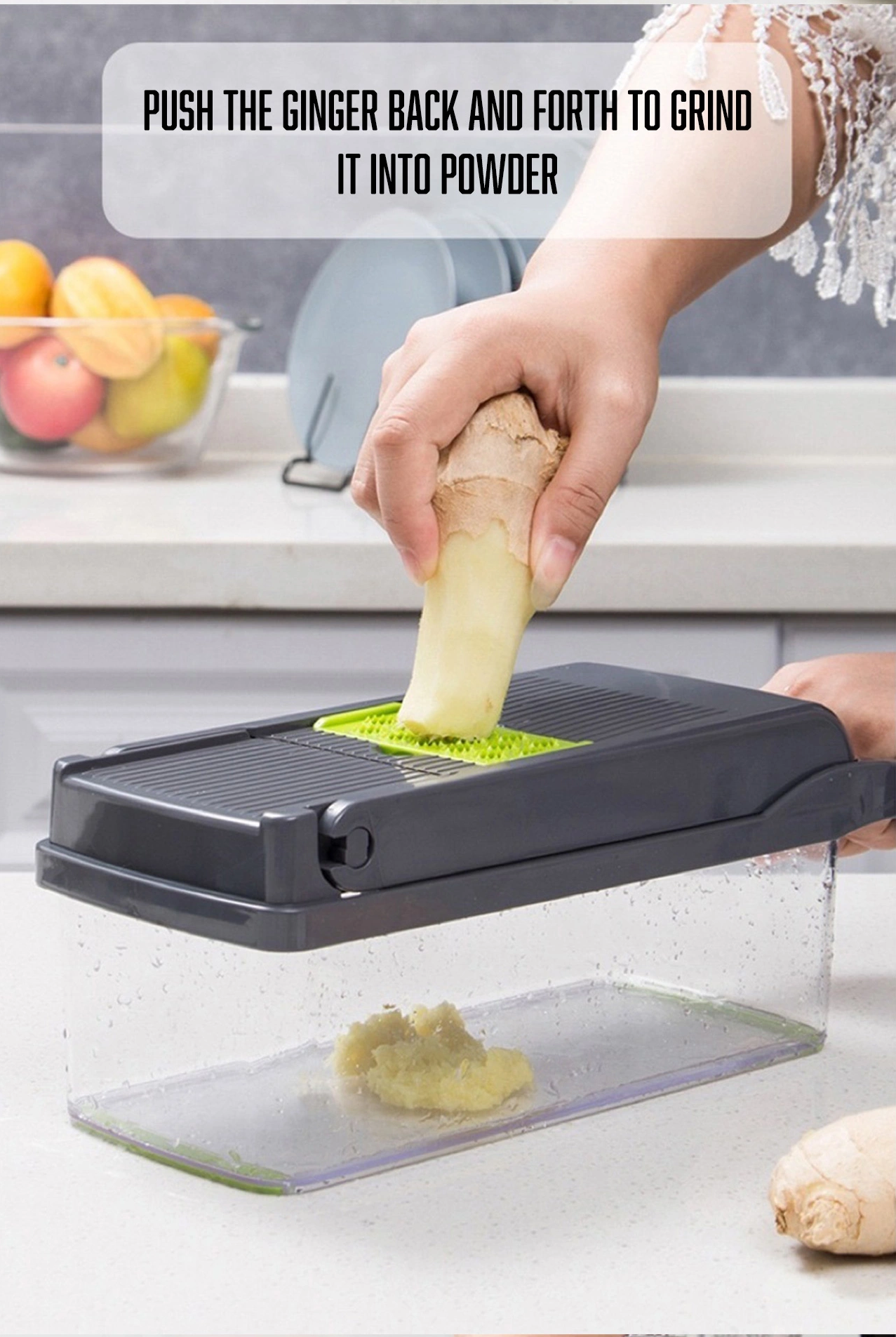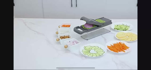 • Mandolina de cocina compacta para cortar dados grandes o pequeños, picar, rebanar, rallar.