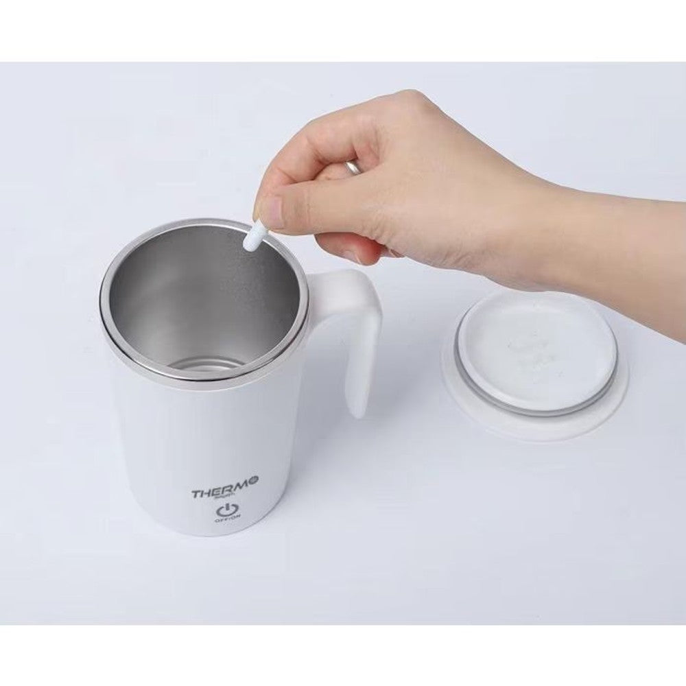 🔋 Tapa con sistema de agitación automática: Mezcla café, chocolate caliente, batidos u otras bebidas con solo presionar un botón. ¡Sin cucharas ni esfuerzo!