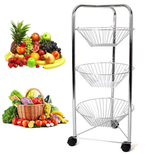 Frutero Puerta Verduras de Cocina 3 Cestas de Metal Cromado Forma Redonda Soport