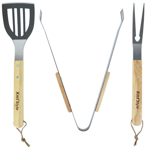 Juego barbacoa 3 utensilios de cocina kit de tenedor, pinza y espátula de acero