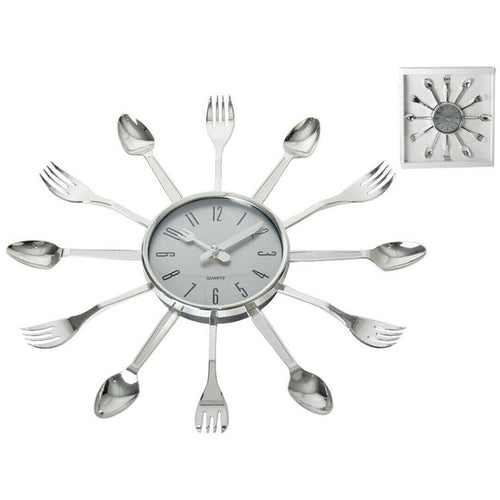 Reloj de pared cocina estilo cubiertos cuchillos y tenedor 37 cm color plateado