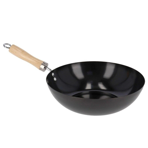 Sartén Wok 30 Cm Acero al Carbono Prensado Revestimiento Antiaderente Con Mago De Madera Válido Para Induccion todo tipo de Cocinas