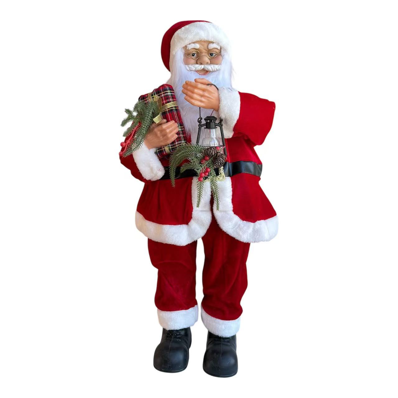 Figura Papá Noel de Pie con Luz, Música y Movimiento 87 cm Sensor de Voz Vestido Rojo y Lámpara Navideña