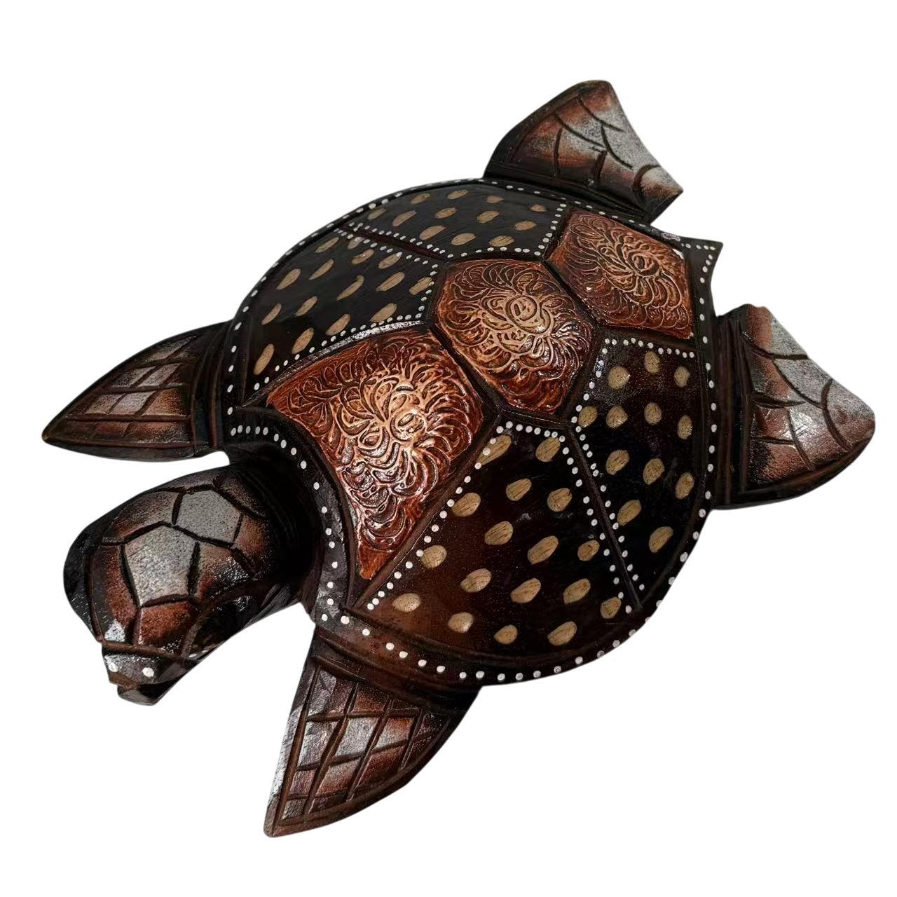 Figura de Tortuga de Madera Marrón – Hecha a Mano para Decoración de Pared o Mesa