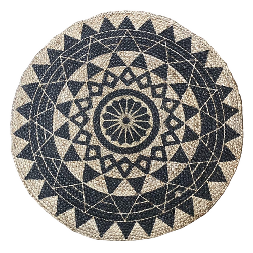 Alfombra de yute con patrón de yute natural y Estampado Negro 100% yute resistente, trenzada, para interiores o exteriores, patio, sala de estar, comedor
