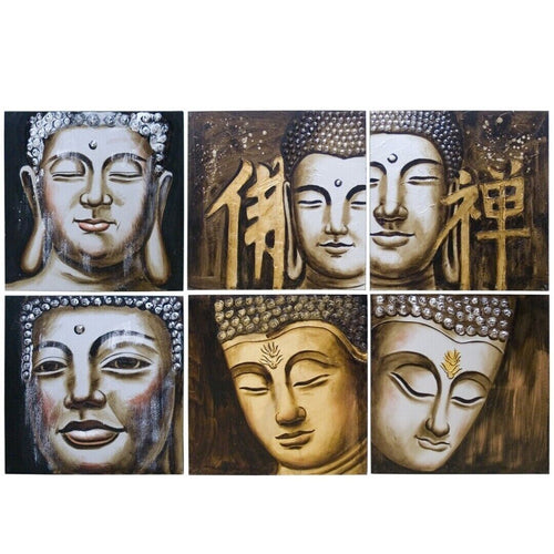CUADRO ÓLEO BUDA CON MARCO DE MADERA 60X60 CM PARA DECORACIÓN CASA