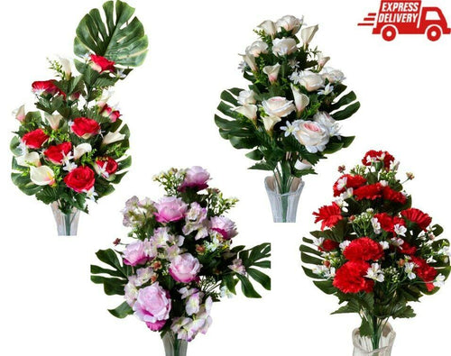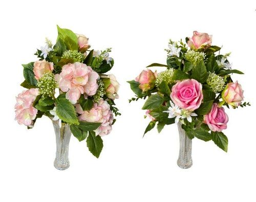 Ramo de Flores Rosa y Hortensia Artificiales Cementerio Decoración 18 tenedores