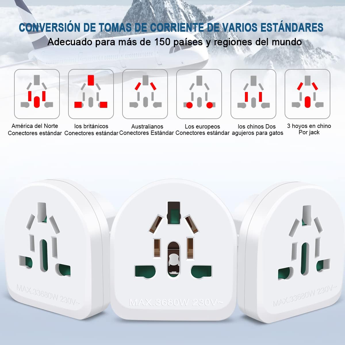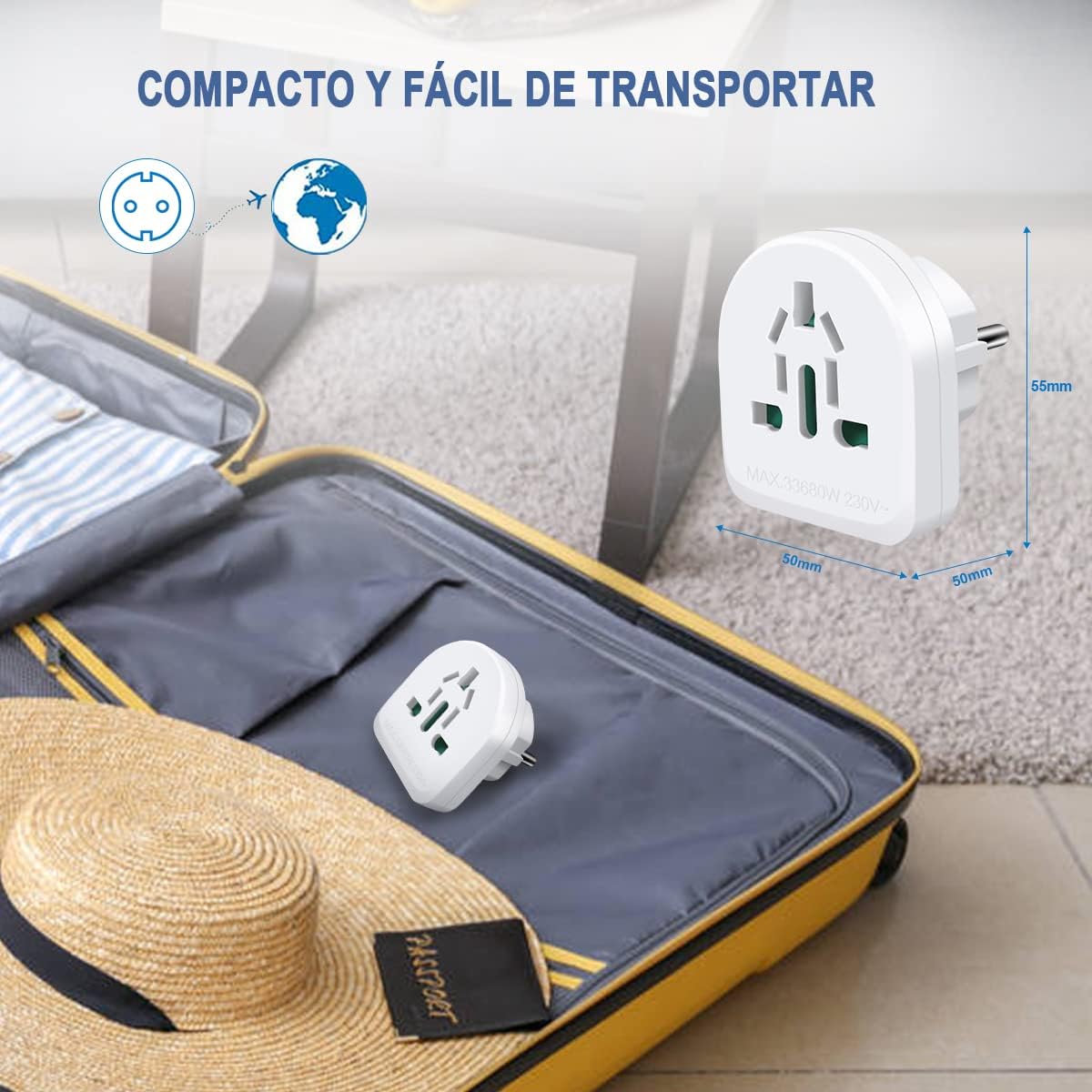 - El adaptador de viaje está diseño únicamente para un uso temporal y no debe utilizarse de forma permanente.