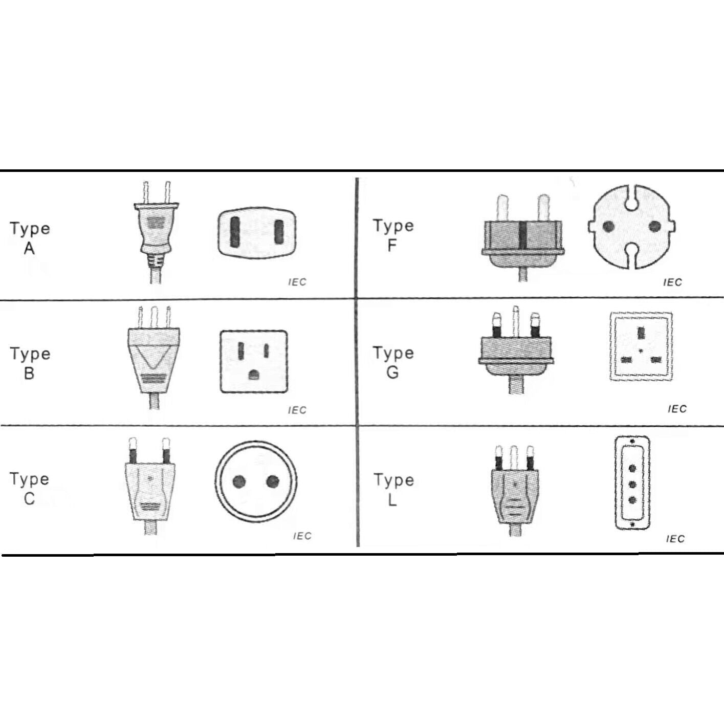 - Aplica únicamente para los siguientes tipos de enchufes: