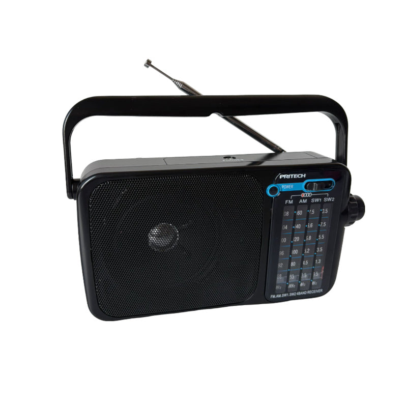 Radio con antena ortátil Am/FM con Funcionamiento AC o DC Negro Radio de 4 bandas