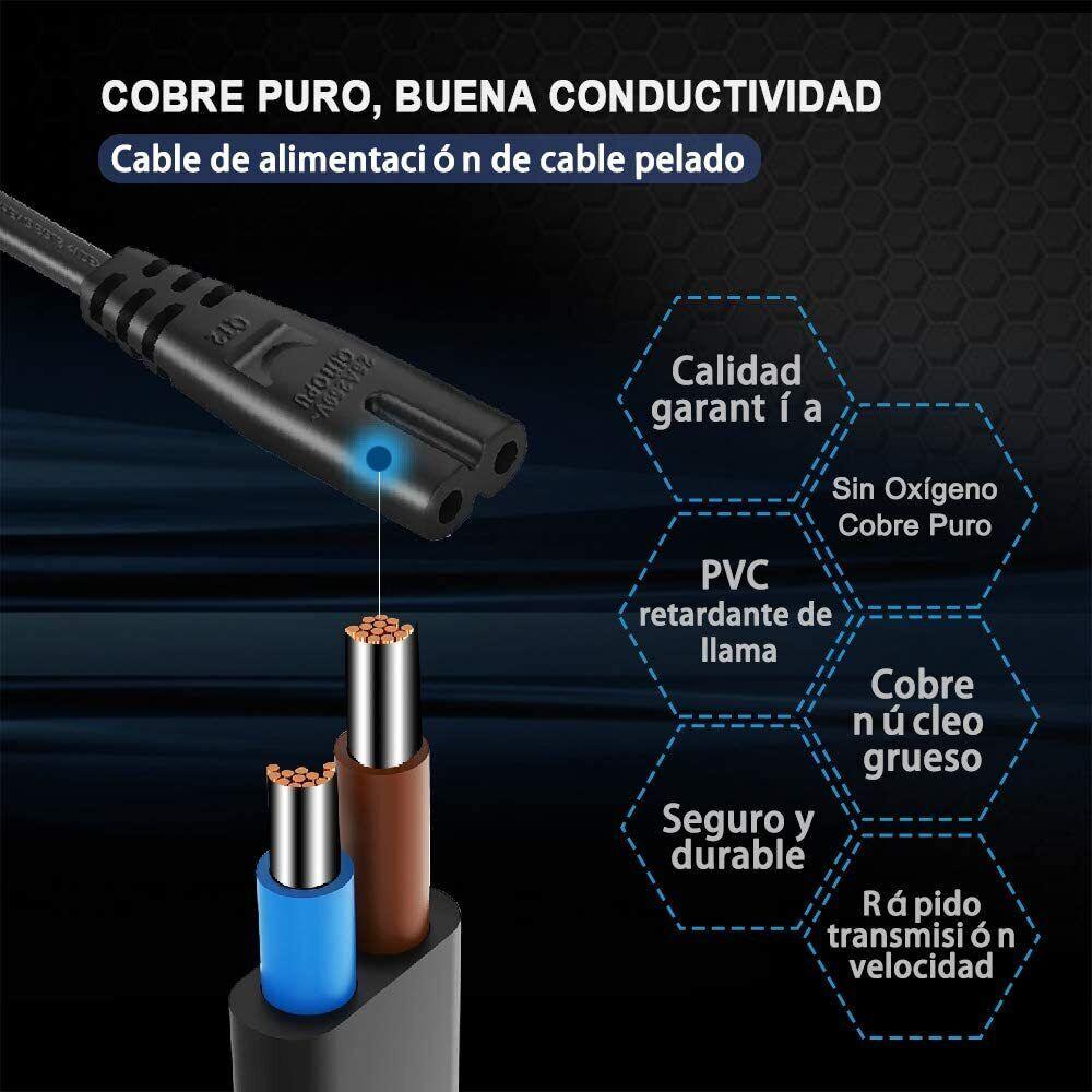 - Cable de Alimentacion:250V 10 Amp Fuse, Cable lenght: 1.5M, 2 x 0.75mm²,Premium quality ES mains Plug to 2 Prong Figura-8 IEC C7 Connector Socket