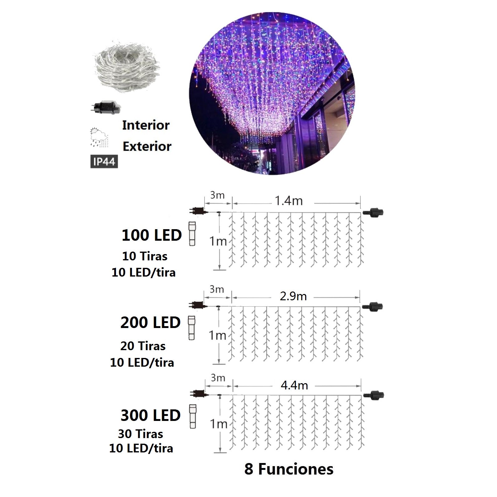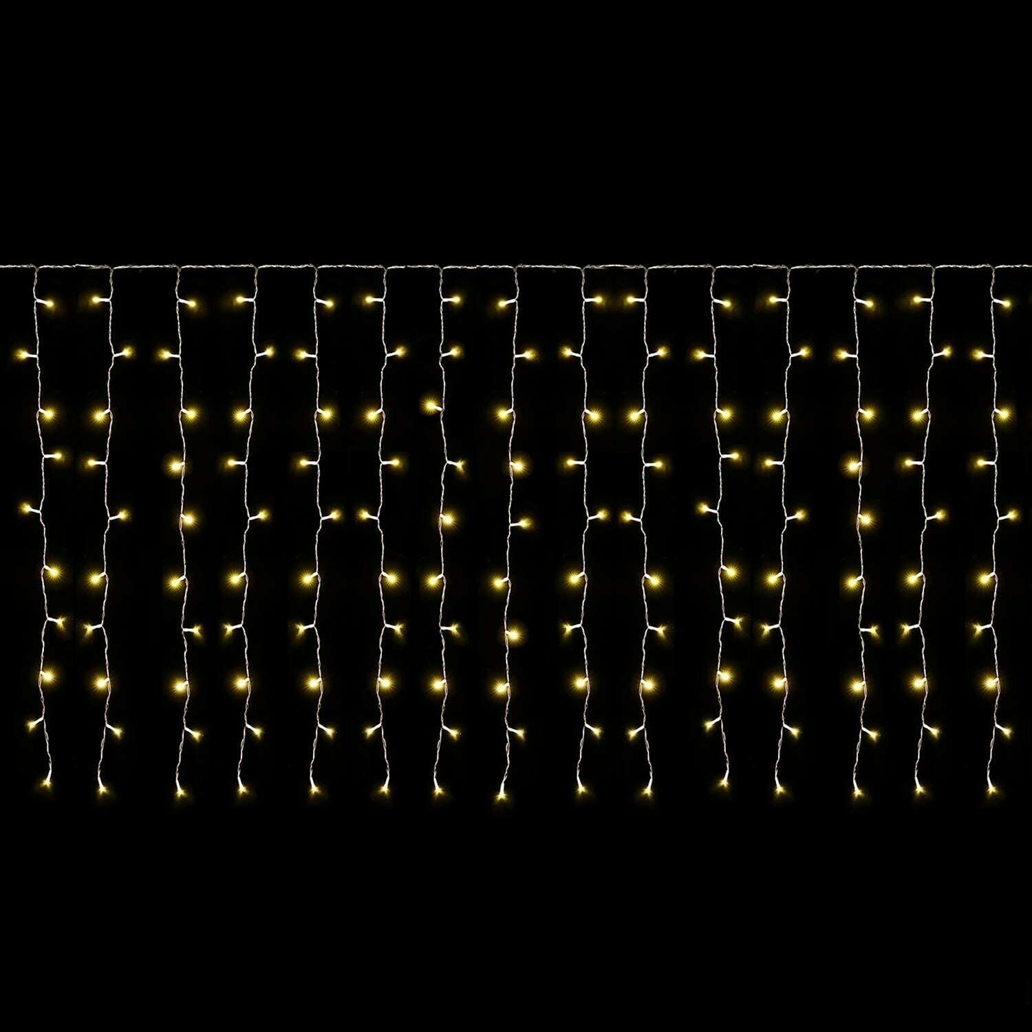 Cortina de Luces LED de Navidad – 100 / 200 / 300 LED – 8 Funciones – Cable Transparente – IP44 Interior y Exterior