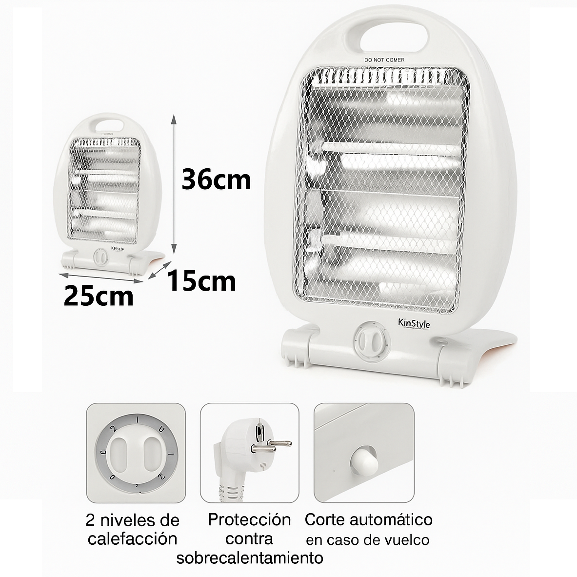 🔥 Estufa Halógena Portátil de Bajo Consumo – 2 Barras (400W / 800W)
