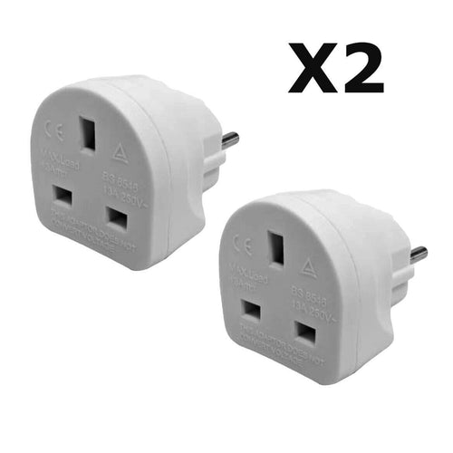 2 x Adaptador Enchufe Uk a Enchufe Europeo Adecuado Para Viajar Blanco 250v, 13a