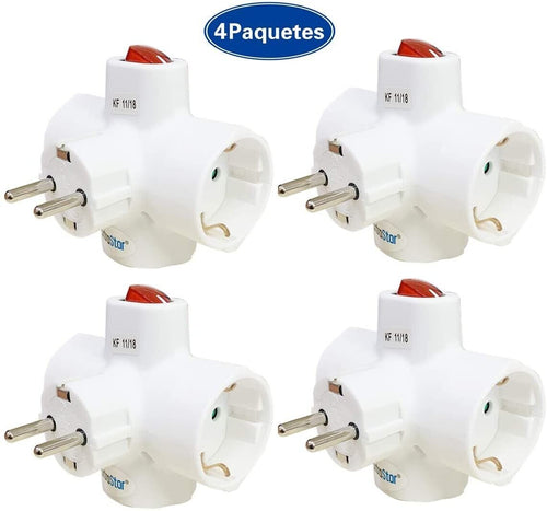 Pack 4 Adaptador Triple Con Enchufe Schuko Con Interruptor Luminoso