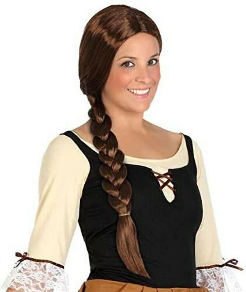 Peluca Caoba Trenza Color pelirojo Adulto Accesorio Carnaval