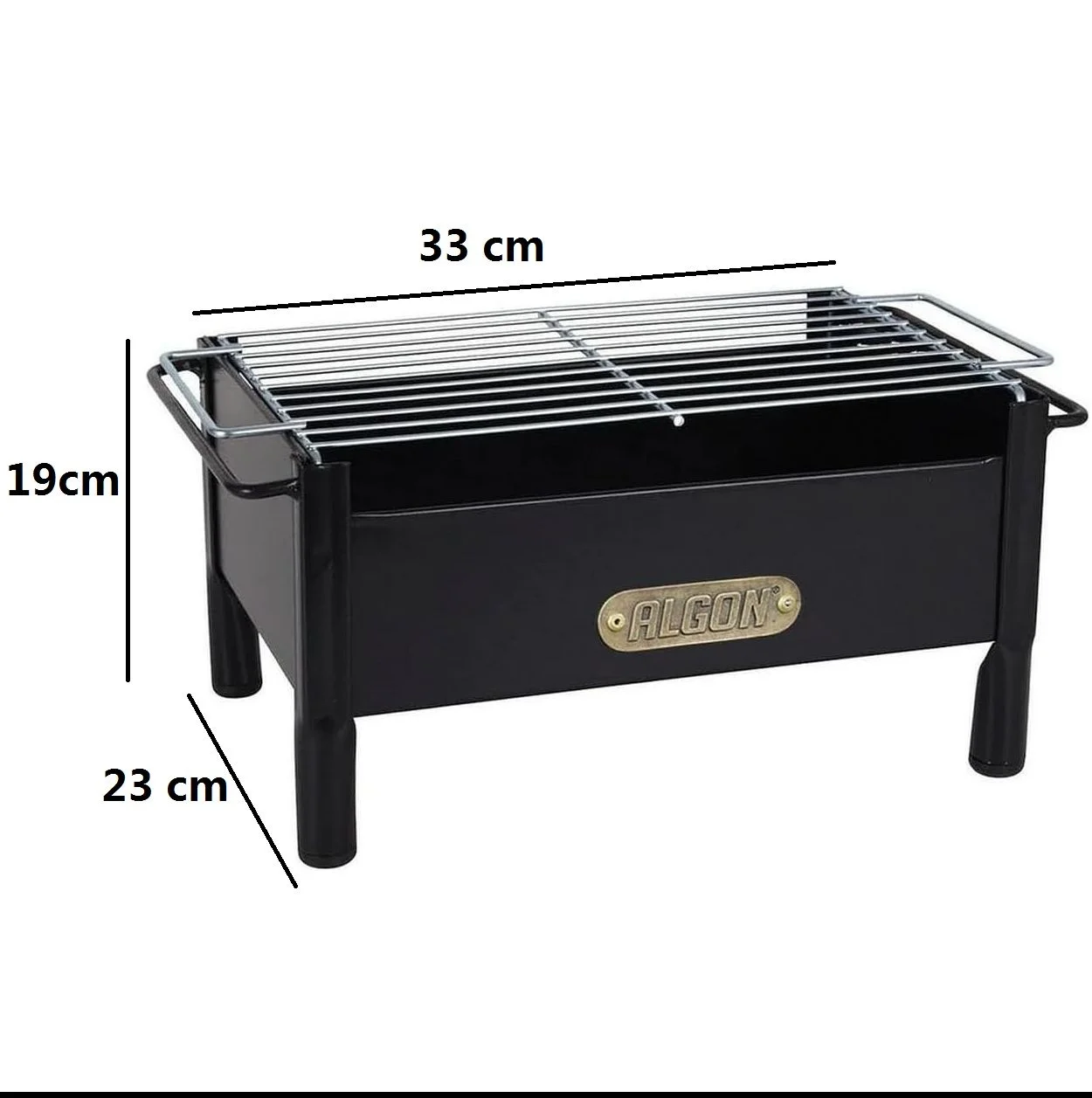 Medida alto (cm):19 cm Medida ancho (cm):23 cm Medida largo (cm):33 cm Material: Hierro con parrilla zincada. Parrilla zincada que cumplen con la normativa CE 1935/2004. Fabricado: España. Tipo de barbacoa: Carbón.