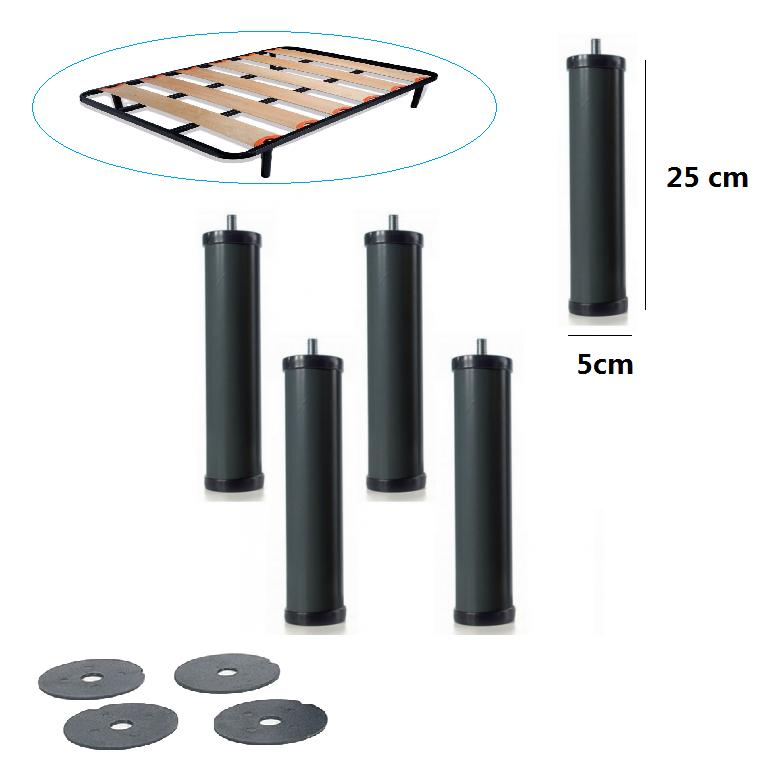 Juego de 4 Patas Cilíndricas Para Somier, Altura 25cm y ø 5 cm Rosca de 10 mm, Patas de Somier
