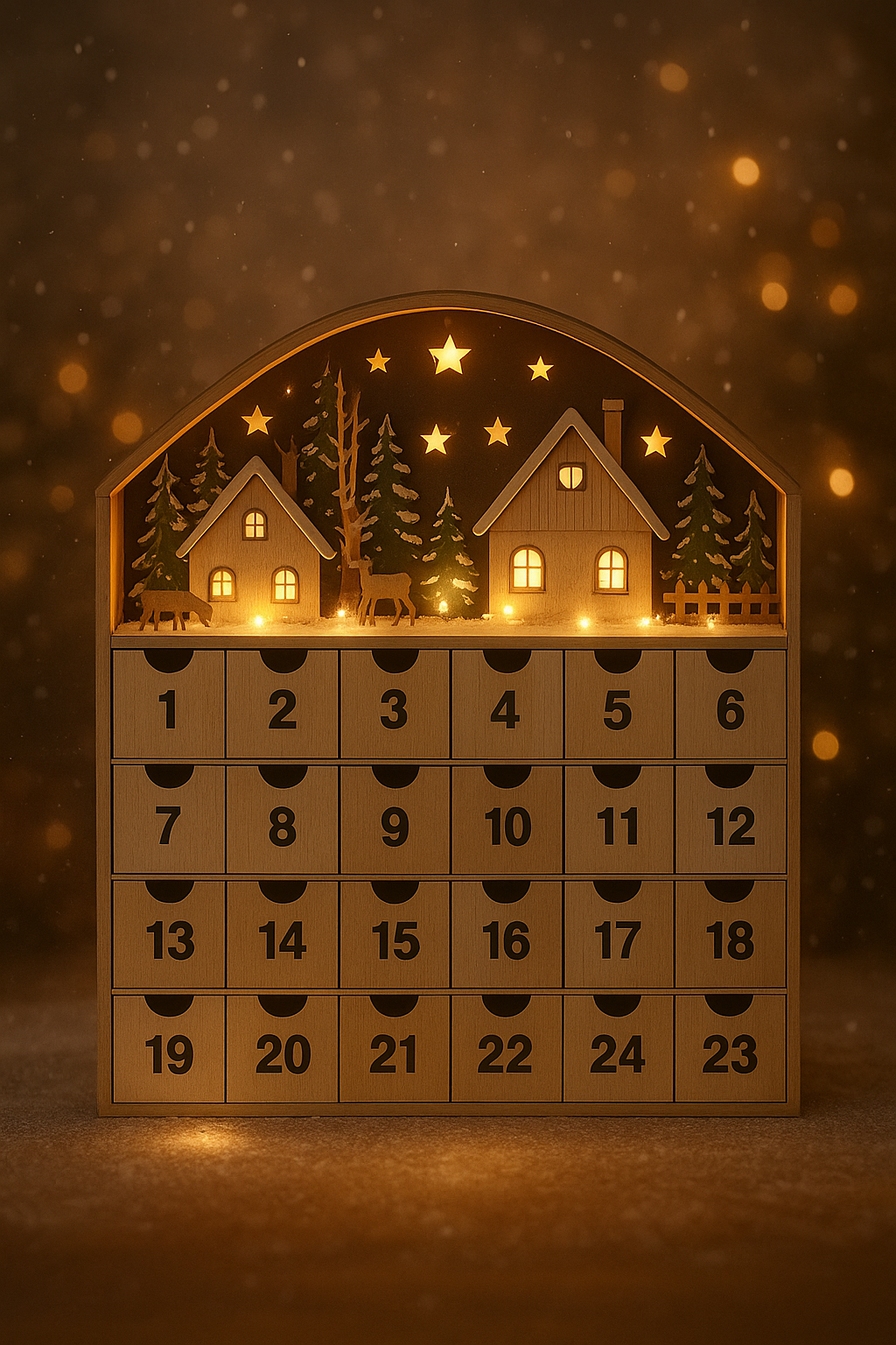 Calendario de Adviento de Madera con Cajones y Luz – Diseño Navideño