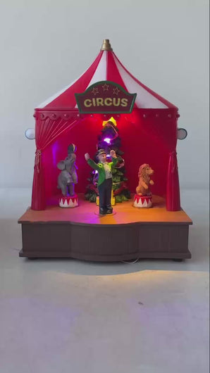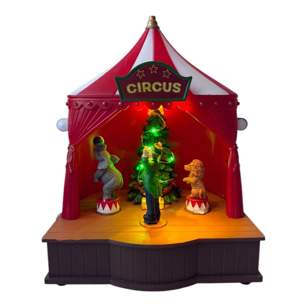 Escena de Navidad Circo con Musica Navideña, Luz y Moviniento para decoracion de Navidad 16x11.5x20 cm
