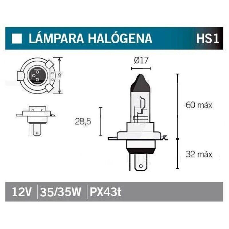 Mejore su vision con esta lampara halognea HS1 35-35W de 12V, esta bombilla mejora el haz de luz dotando al motorista de una mejor vision en carretera