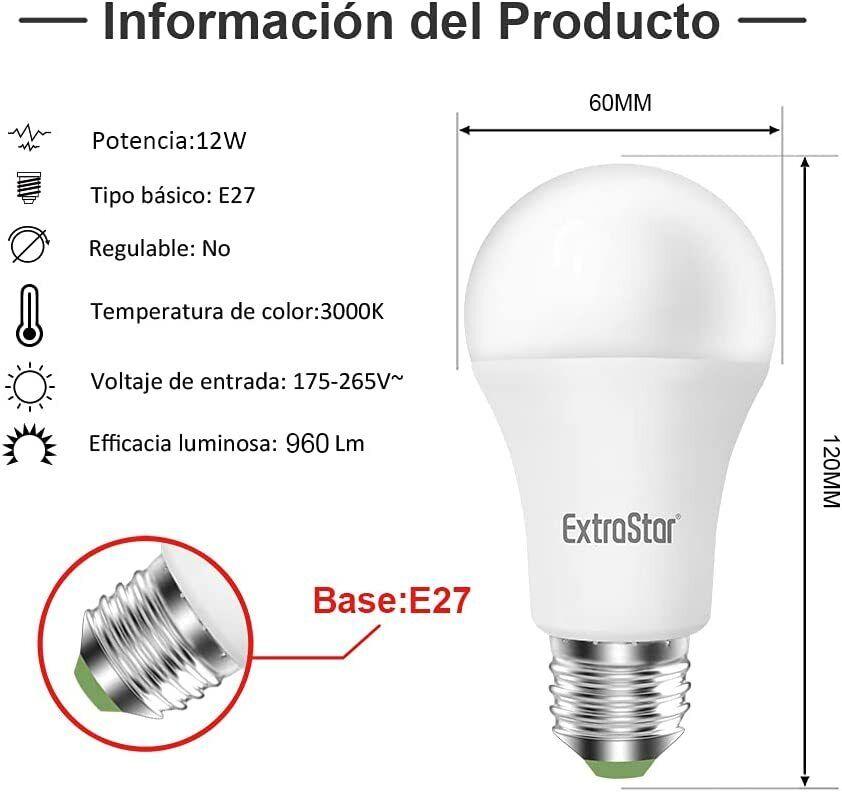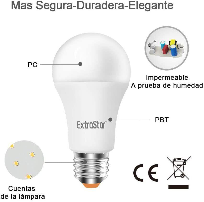 - Ahorro de energía y Larga vida útil:reduzca su factura de electricidad hasta en un 90% reemplazando su incandescente de 96w con Extrastar bombilla de 12W.Promedio de 25000 horas, dura hasta 3 años , ahorrando costos y problemas frecuentes de reemplazo de bombillas.