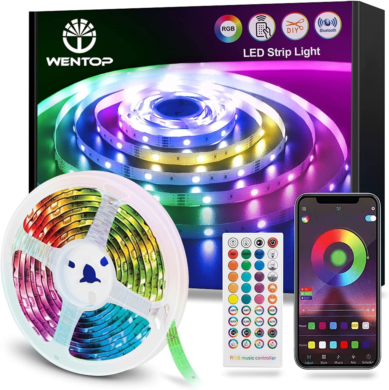 WenTop Tira LED 10 Metros, Luces LED Habitación Bluetooth 10M, RGB Tiras LED con Control Remoto y Inteligente Control de APP, Cambia el Color con la Música, Para Decoración de Bares, Fiestas, Cocina