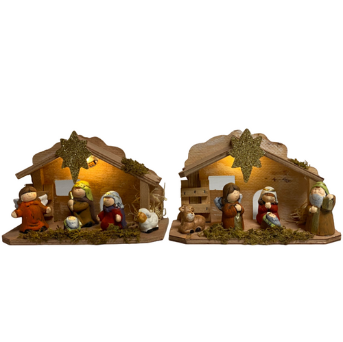 Portal Nacimiento Infantil Nature con 1 Luz de LED Pesebre Belen Figuras Decoracion Navidad 22x15 cm