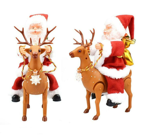 Santa Claus Papá Noel en reno con músuca movimiento y luz figura Navidad belen