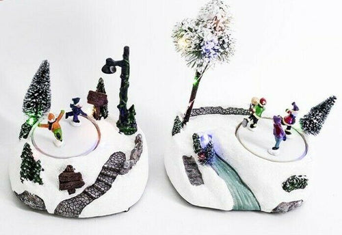 Pista patinaje con luz y movimiento 16x12x12.5 cm especial Navidad figura decora