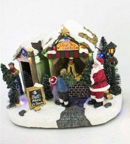 ESCENA TIENDA DE PINOS con luces para Navidad decoración 14X20 cm figura