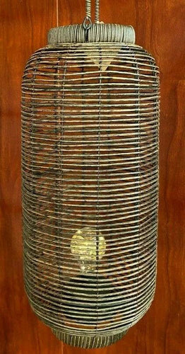 Farol redondo mimbre con candelera para velas, asa cáñamo colgante luz hogar