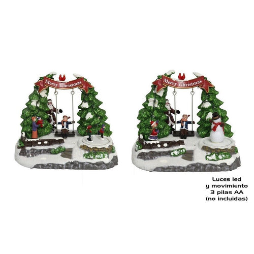 Escena Columpio Decoracion de Navidad Con Luz y Movimiento 23 x 18 cm