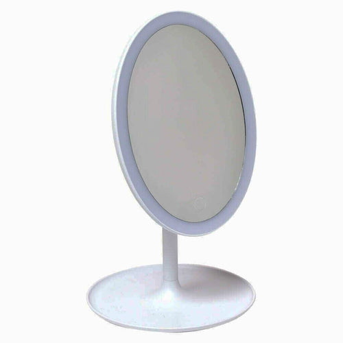 Espejo Con Luz Led Natural Ovalado Con Pie Blanco Para Maquillaje 31.5 x 18 Cm