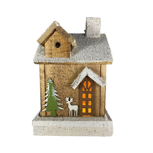 Casa de Madera con Luz 5 LED 15.5 x12.3 x 24 cm Decoración de Navidad