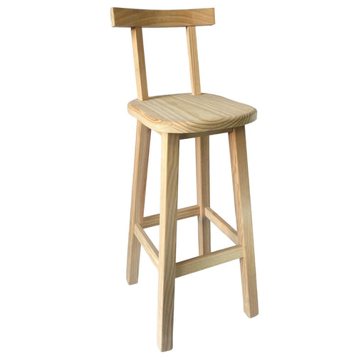 Taburete de Barra con Respaldo Madera Natural y Resistente, Diseño Original con Reposapiés