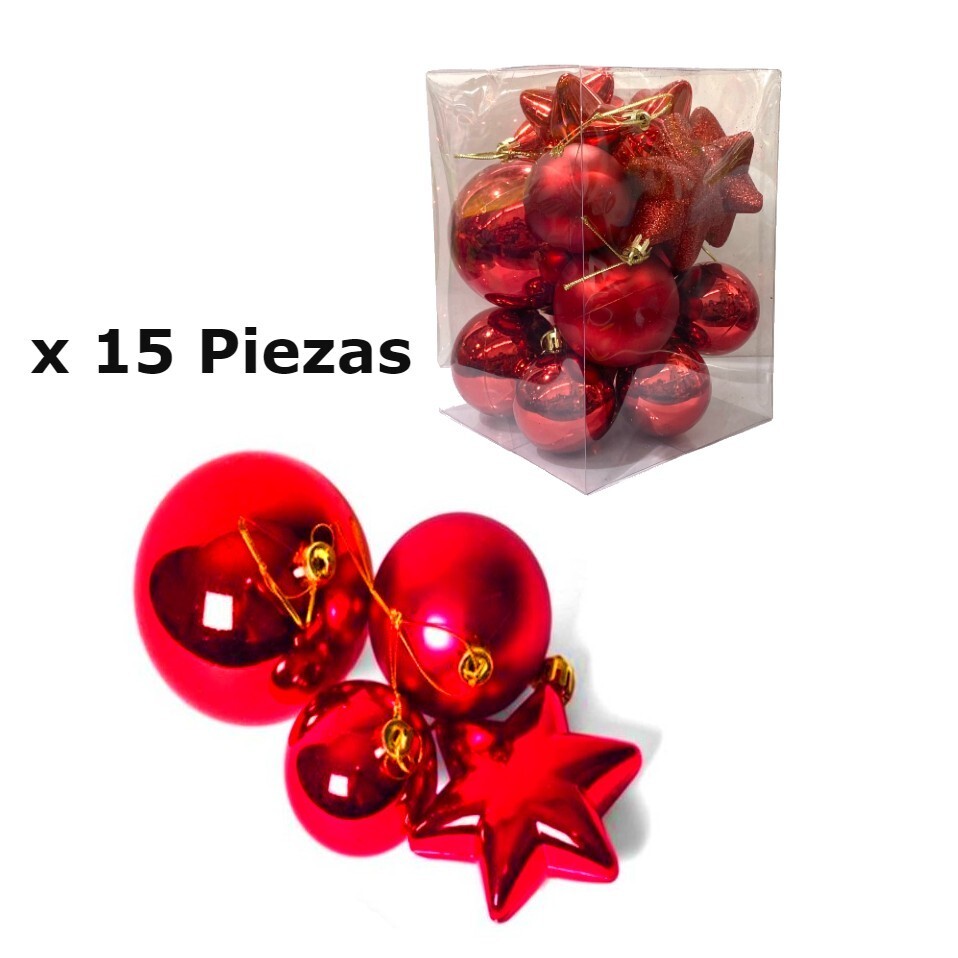 Contenido: 15 piezas de bolas y estrellas con color brillos mates y purpurinas