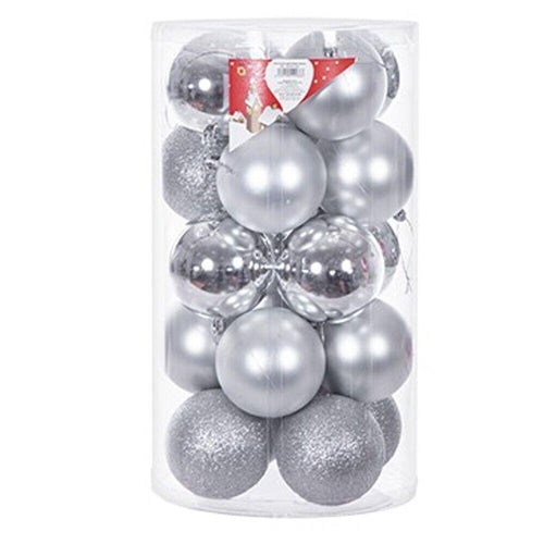 20 bolas plata brillo/mate/purpurina cilindro Navidad decoracion